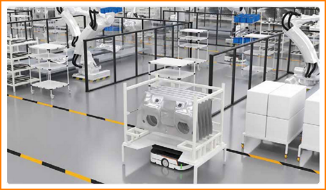 ระบบนี้ช่วยลดขั้นตอนการทำงานซ้ำซ้อนของพนักงานและเพิ่มความปลอดภัยในการขนย้ายวัสดุหนัก โดย AMR Robot สามารถ เคลื่อนที่ได้อย่างปลอดภัยในพื้นที่โรงงาน โดยไม่จำเป็นต้องติดตั้ง