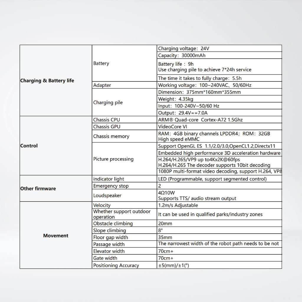 Minimum assage Width : 70 cm - Maximum Speed : 1.2m/s