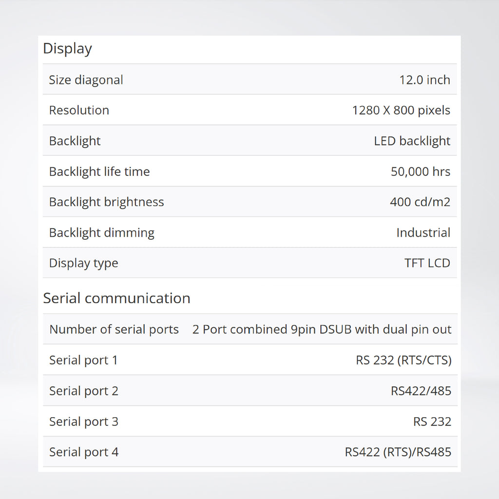 - 12.1" TFT-LCD touch screen