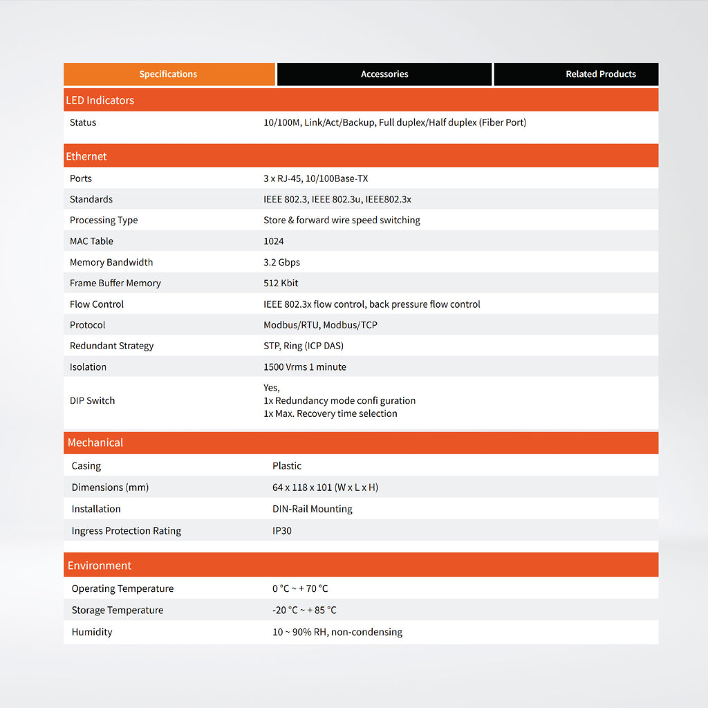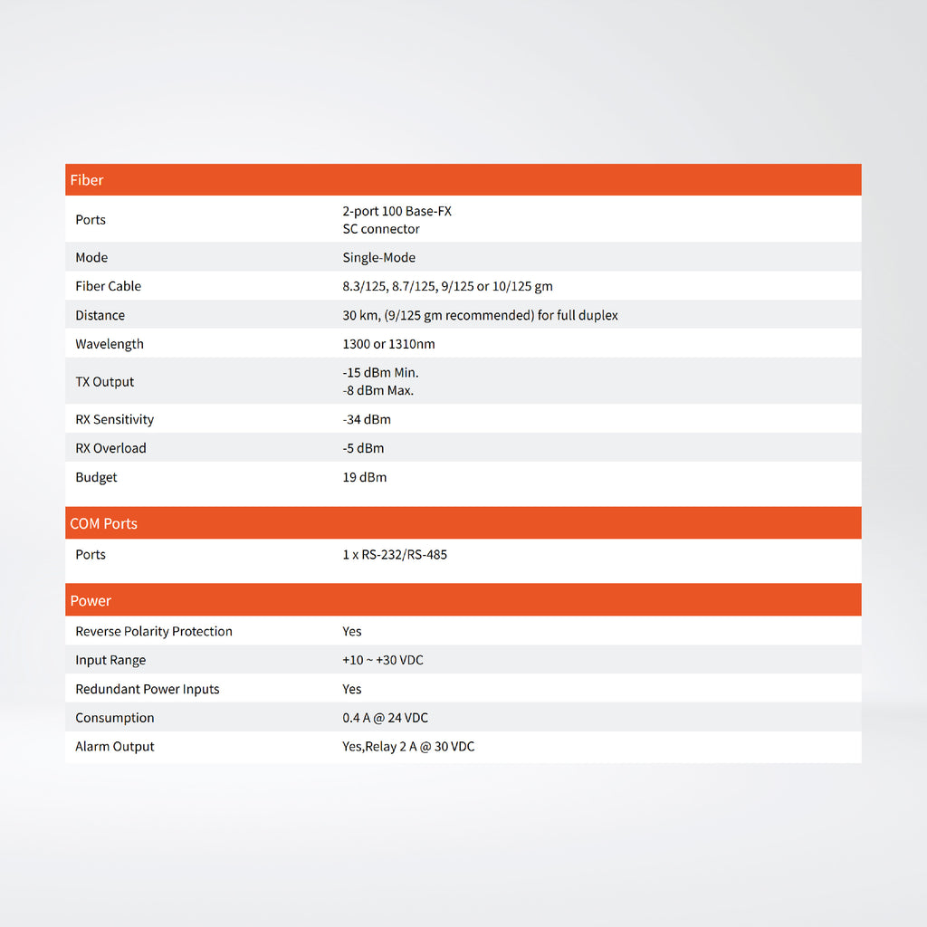 5-Port Real-time Redundant Ring Switch with 2-Fiber Port (Single Mode, SC Connector)