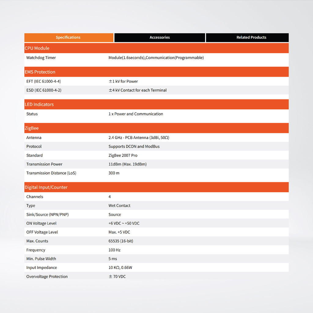 - All Digital Input Channels can be used as 16-bit Counters