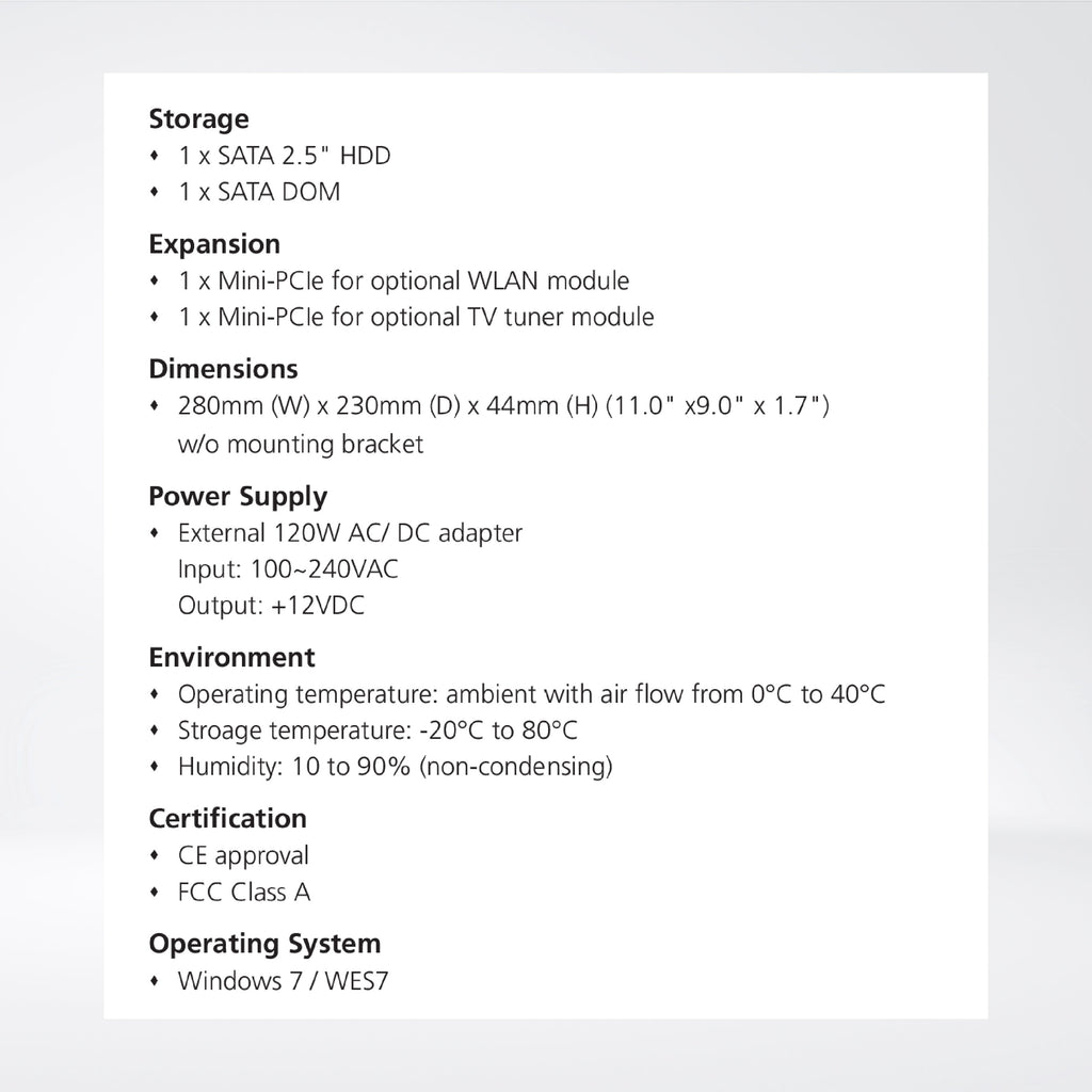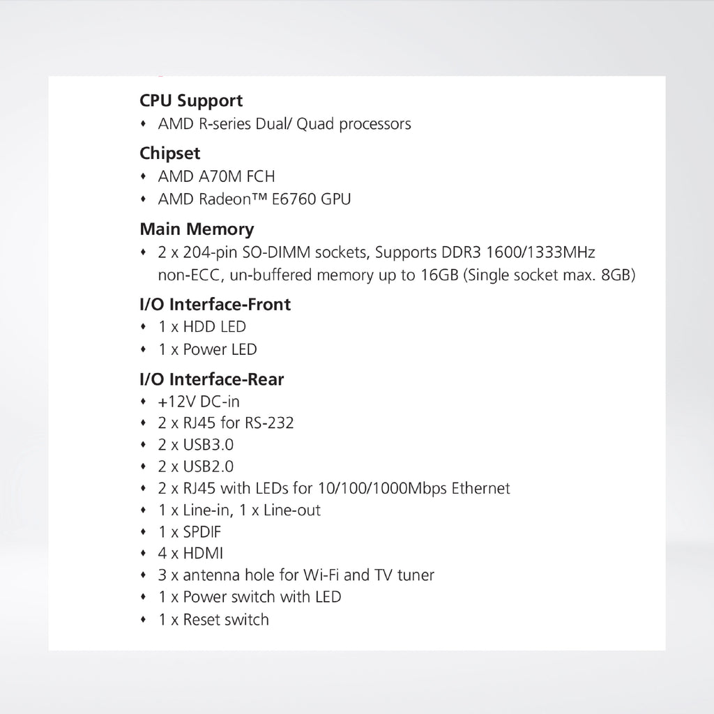 NDiS B842 is specifically designed to address the need for application to present high quality contents on multiple displays. NDiS B842 provides four independent HDMI and dual USB3.0 and dual GbE Ethernet with optional WLAN. Powered by AMD Embedded R-Series APU and AMD E6760 GPU, NDiS B842 can smoothly playback multiple Full HD videos. NDiS B842 is an advanced media player for any applications to demonstrate high quality and high impact contents over multiple displays.