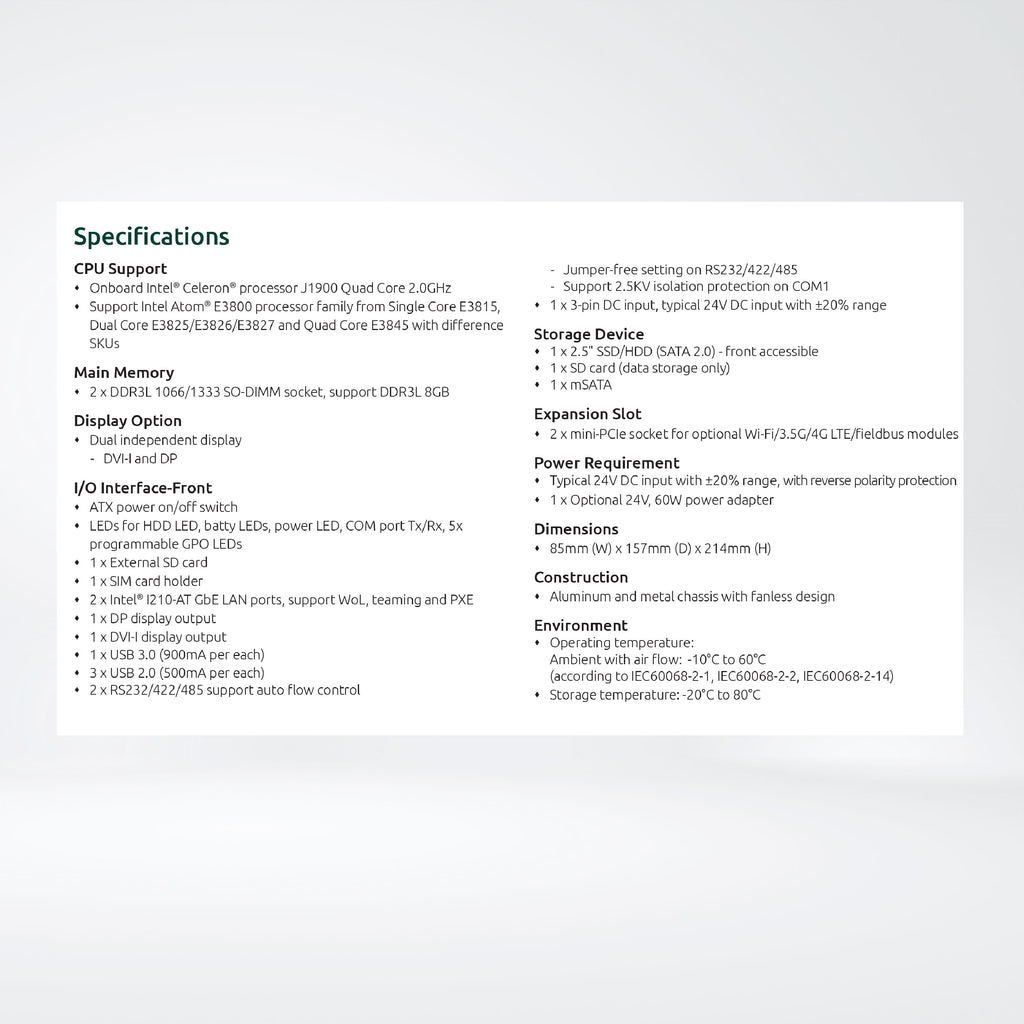 - Onboard Intel® Celeron® processor J1900 Quad Core 2.0GHz